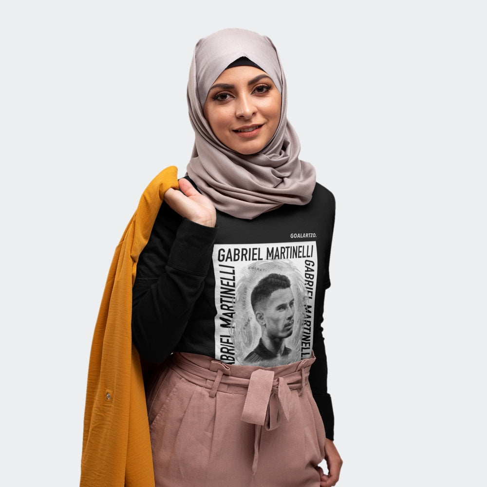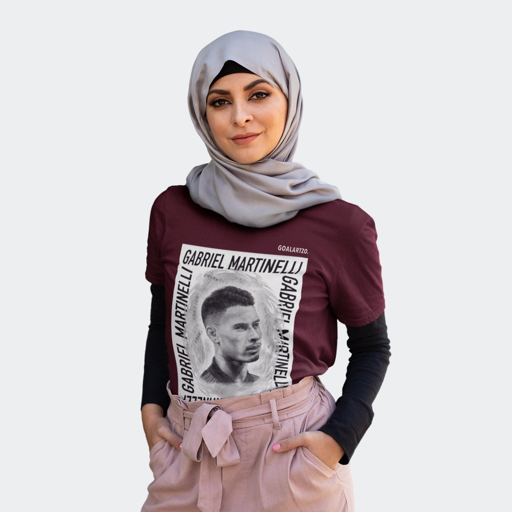 Velvet-soft, unisex Gabriel Martinelli T-shirt made from 100% recycled fabric - a must-have for any Martinelli fans! In the centre of the T-shirt is a hand-drawn portrait of Gabriel Martinelli, which makes this tee stand out from the rest. Made from 100% recycled fabric, you're also saving the planet.